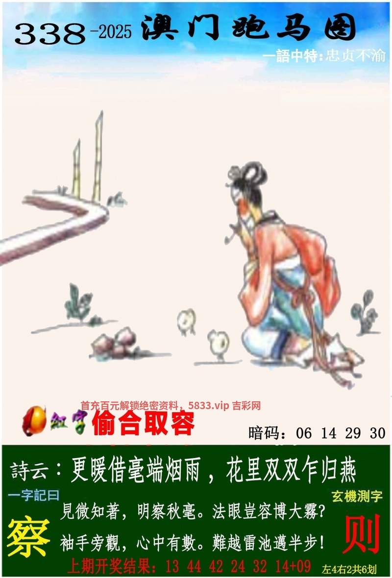 | 342期一字記曰:【發】开:發00准 正在更新。 解:正在更新。 生肖:正在更新 12码:正在更新 |