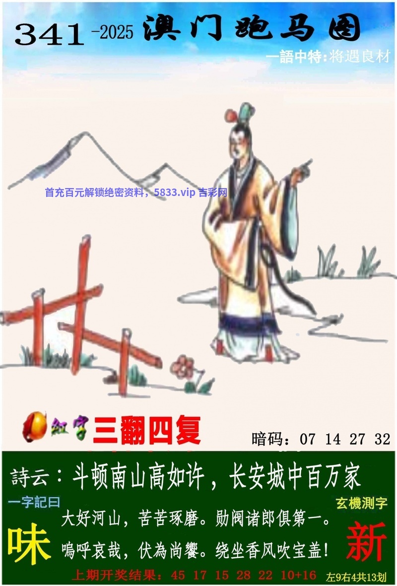 | 341期《必杀10码》开:鼠06中 『04.05.15.18.24.33.35.38.40.46』 |
